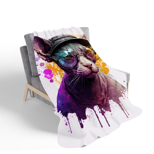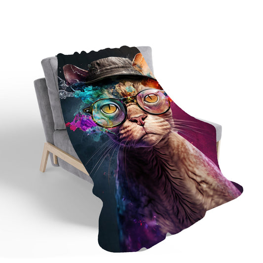 Devon Rex Cat With Glasses Splashart Sherpa Blanket