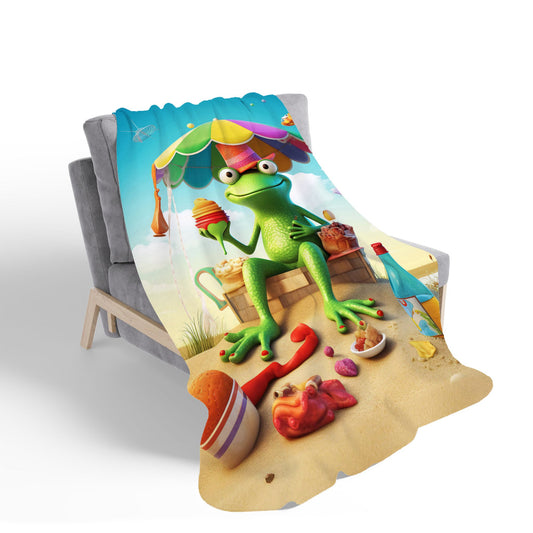 Frog On A Beach Holiday Sherpa Blanket