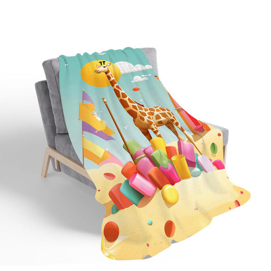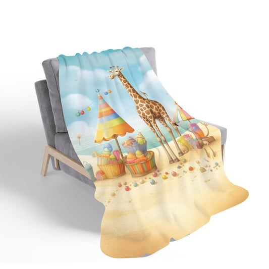 Giraffe On A Beach Holiday Sherpa Blanket