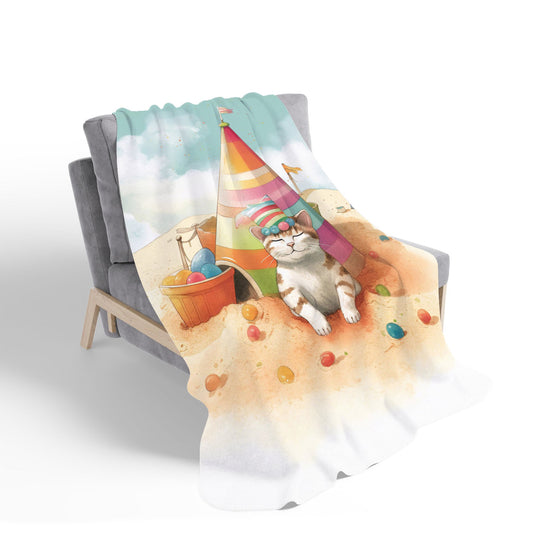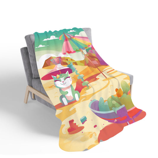 Cat On A Beach Holiday Sherpa Blanket