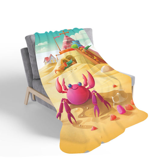 Crab On A Beach Holiday Sherpa Blanket