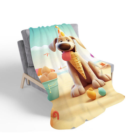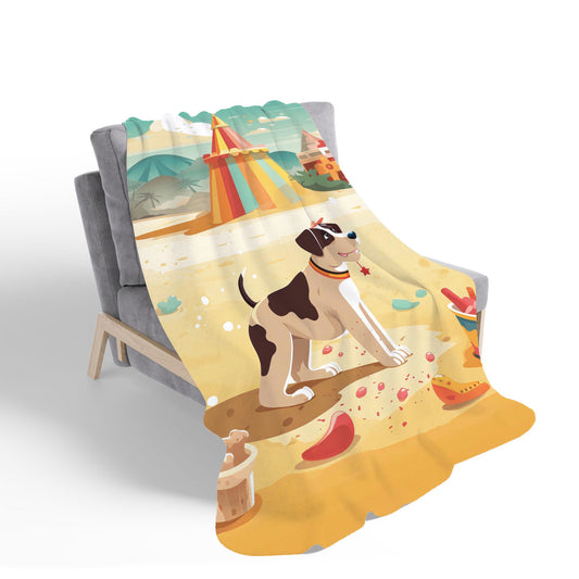 Dog On A Beach Holiday Sherpa Blanket