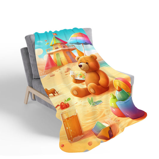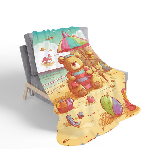 Teddy Bead On A Beach Holiday Sherpa Blanket