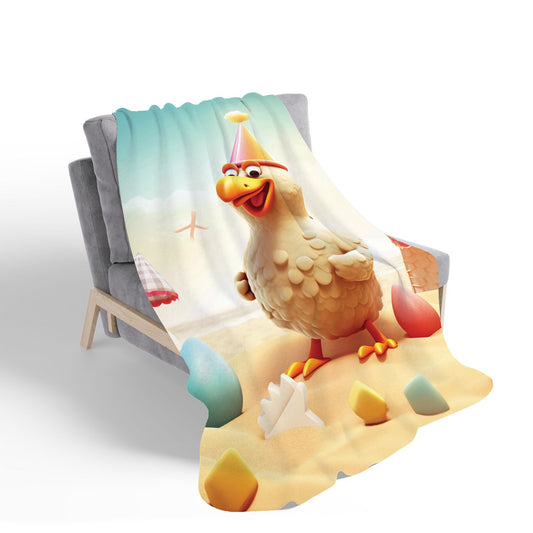 Funky Chicken On A Beach Holiday Sherpa Blanket