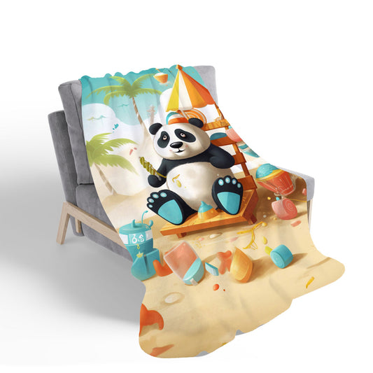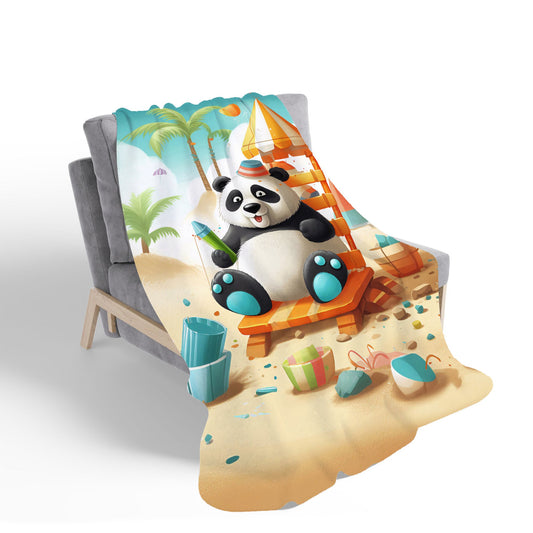 Panda On A Beach Holiday Sherpa Blanket