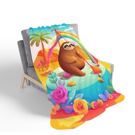 Sloth On A Beach Holiday Sherpa Blanket