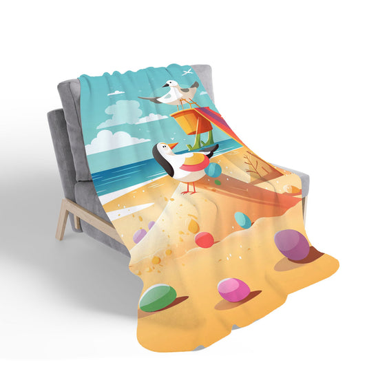 Seagulls On A Beach Holiday Sherpa Blanket