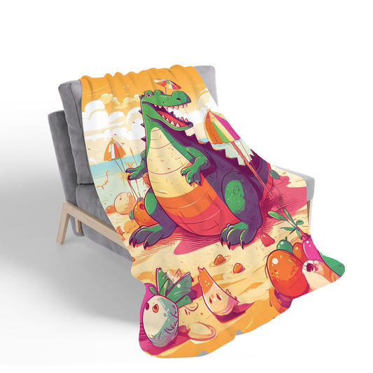 Crocodile On A Beach Holiday Sherpa Blanket