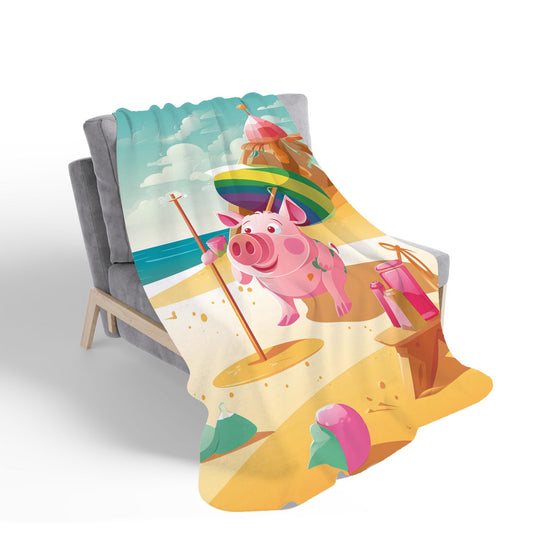 Pig On A Beach Holiday Sherpa Blanket