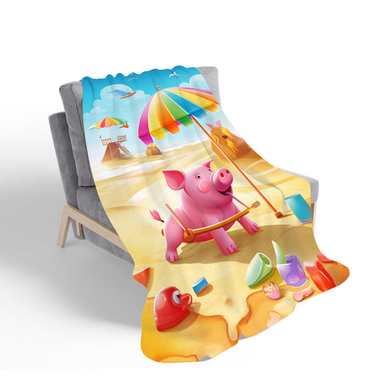 Piglet On A Beach Holiday Sherpa Blanket