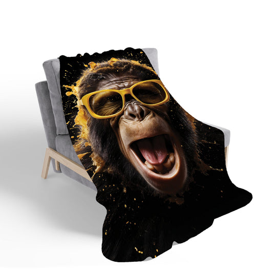 Coloured Splashart Crazy Monkey Face Sherpa Blanket