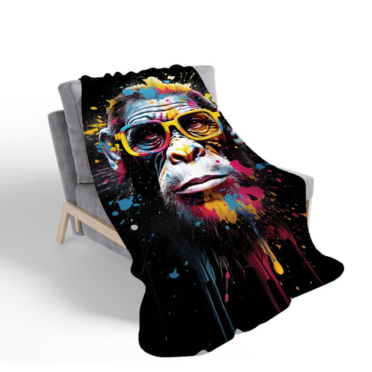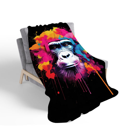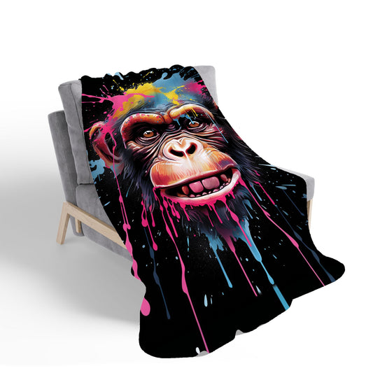 Coloured Splashart Monkey Face Sherpa Blanket