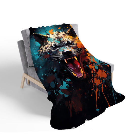 Splashart Angry Hyena Face Sherpa Blanket