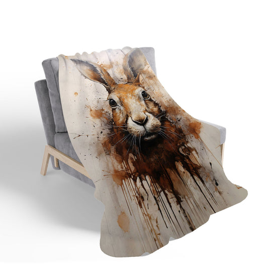 Watercolour Hare Face Sherpa Blanket