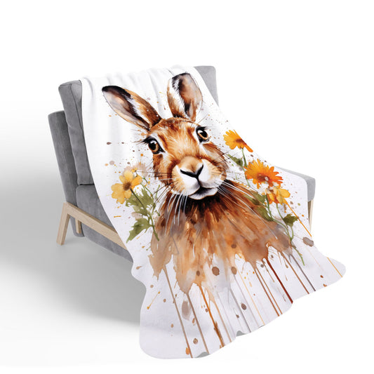 Watercolour Hare and Daisies Sherpa Blanket