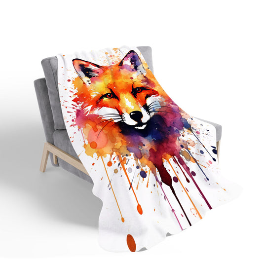 Watercolour Splashart Fox Face Sherpa Blanket