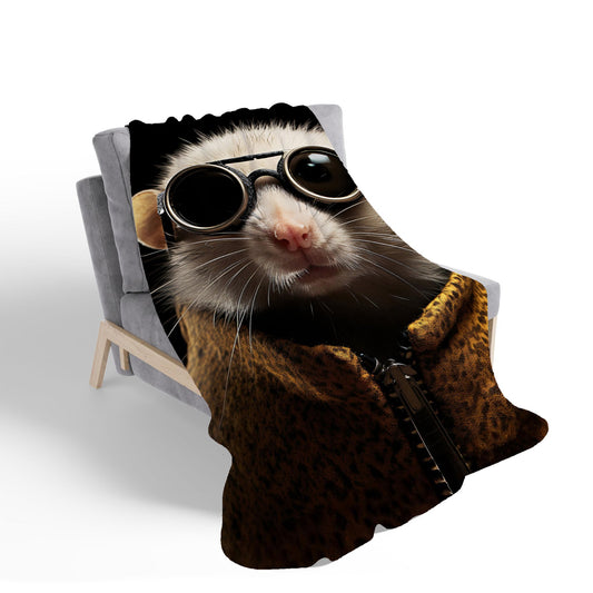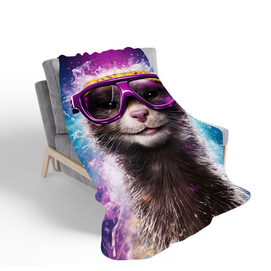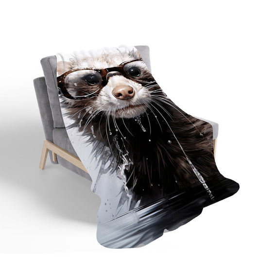 Splashart Ferret With Glasses Sherpa Blanket