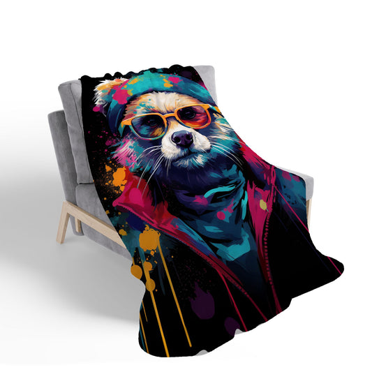 Multi Coloured Splashart Dog With Glasses Sherpa Blanket
