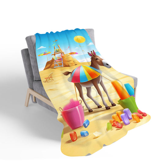 Donkey On A Beach Holiday Sherpa Blanket