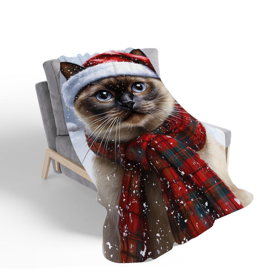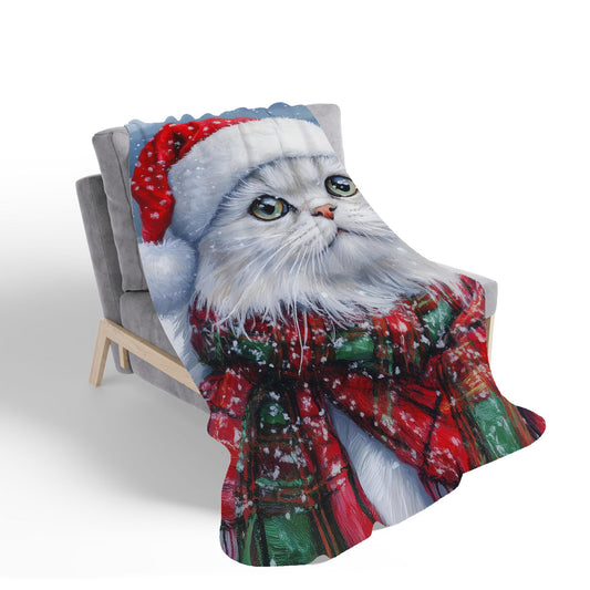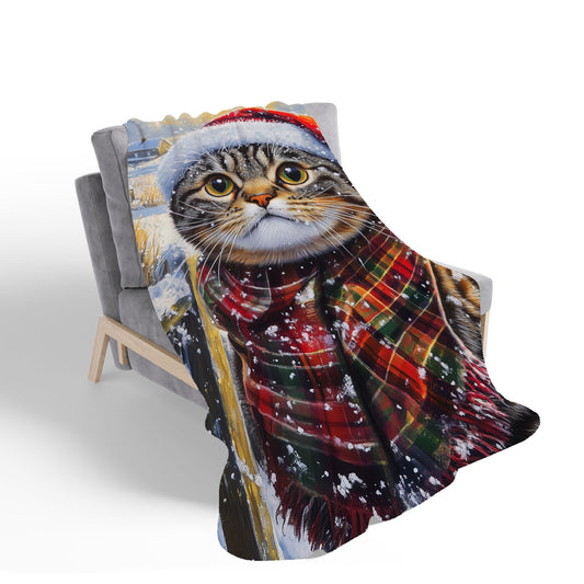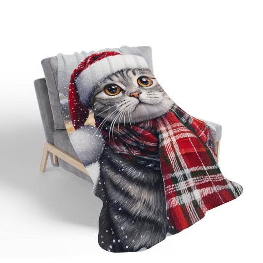 Snowy Christmas Scottish Fold Cat Sherpa Blanket