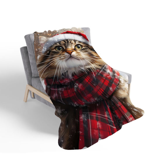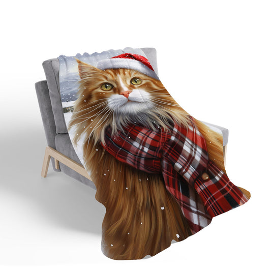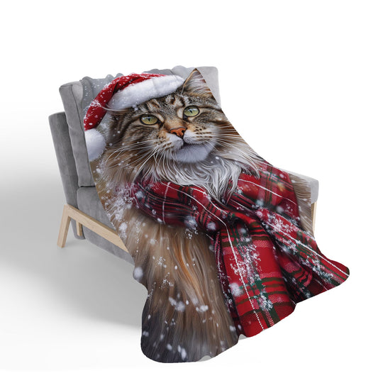 Snowy Christmas Maine Coon Cat Sherpa Blanket