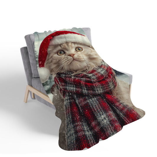 Christmas Scottish Fold Cat Sherpa Blanket