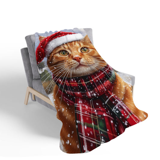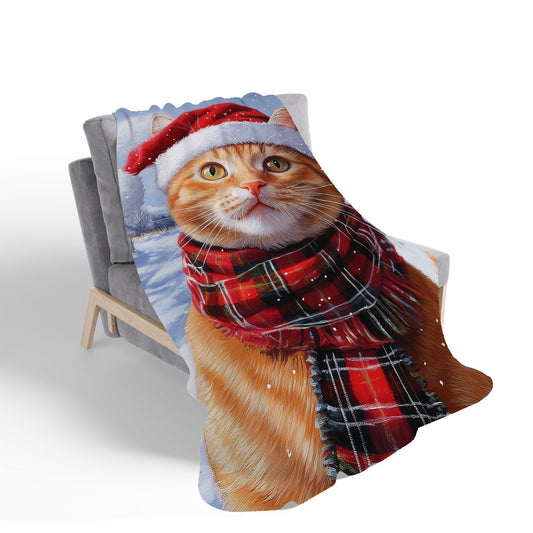 Christmas Ginger Shorthair Cat Sherpa Blanket