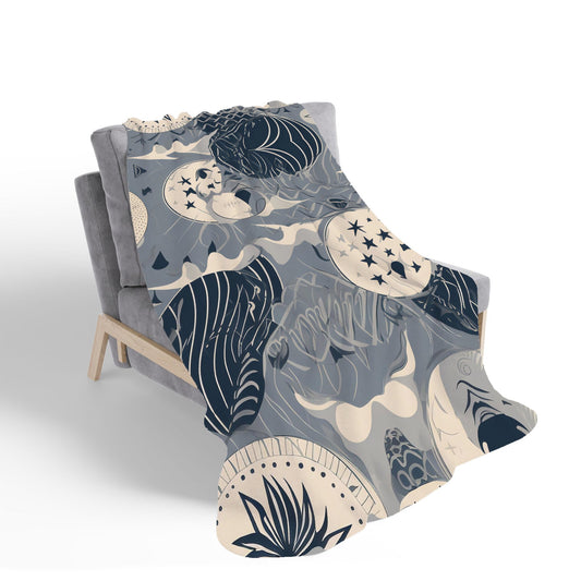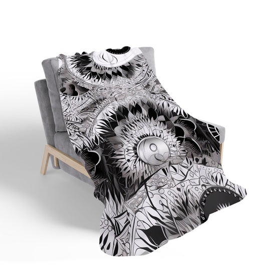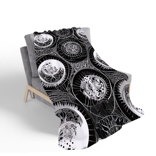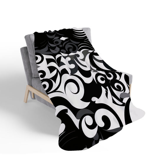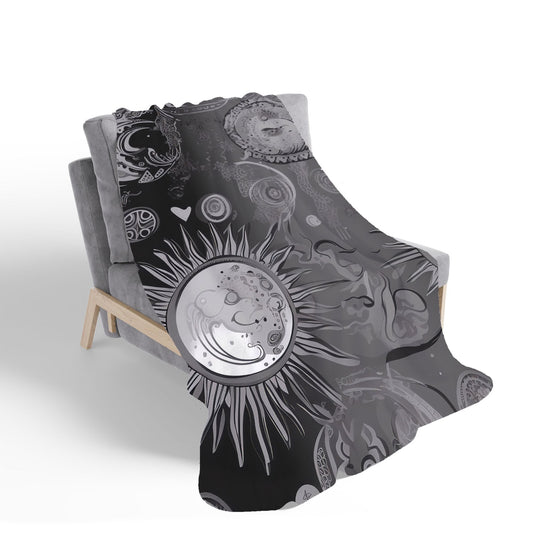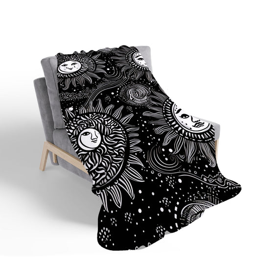 Black Grey Abstract Sun and Moon Sherpa Blanket