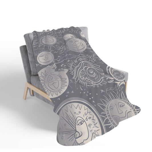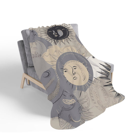 Grey Black Abstract Moon and Sun Sherpa Blanket
