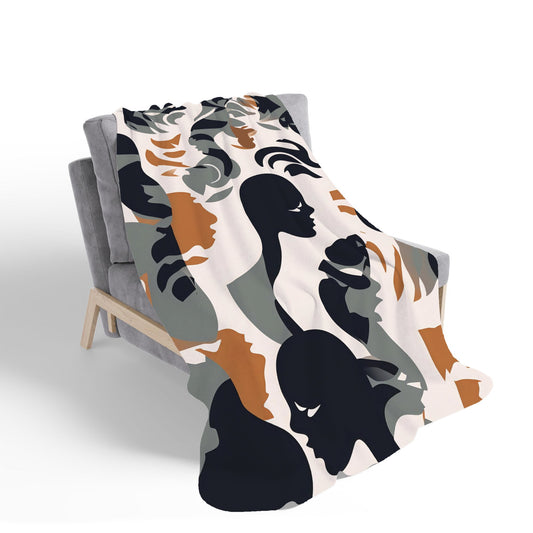 Abstract Grey Brown Silhouette Sherpa Blanket