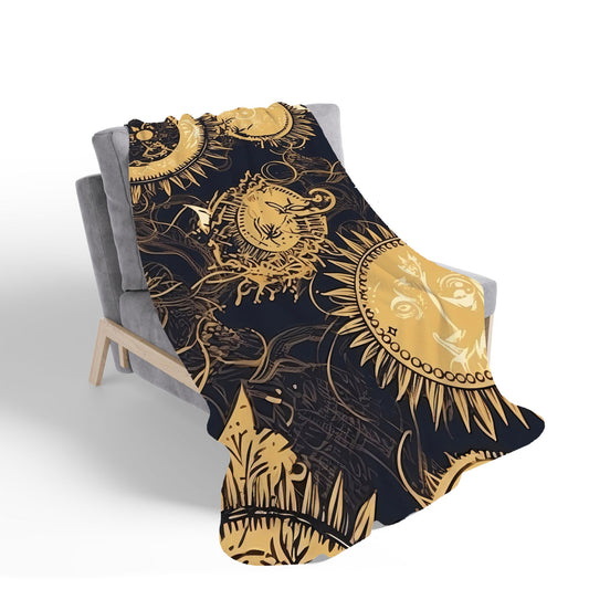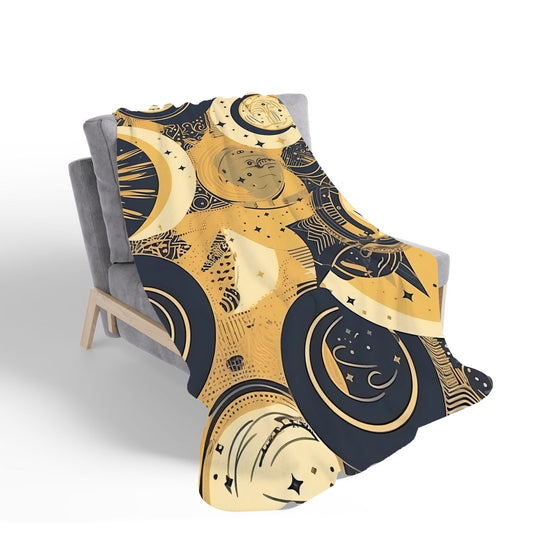 Abstract Silver Gold Sun and Moon Sherpa Blanket