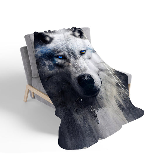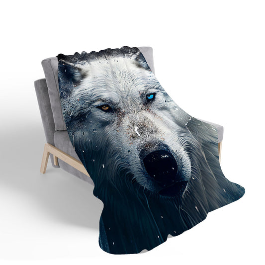 White Wolf Face Splashart Dark Backgrouns Sherpa Blanket