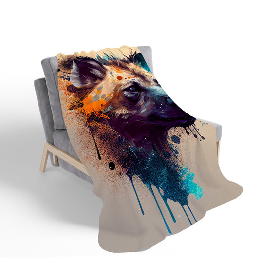 Hyena Face Splashart Dark Background Sherpa Blanket