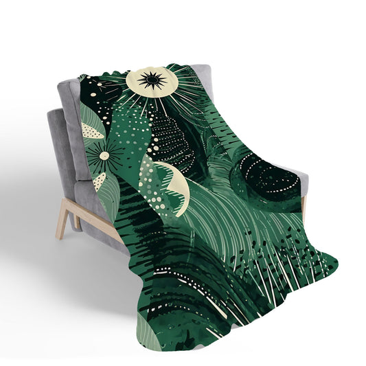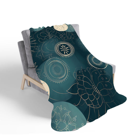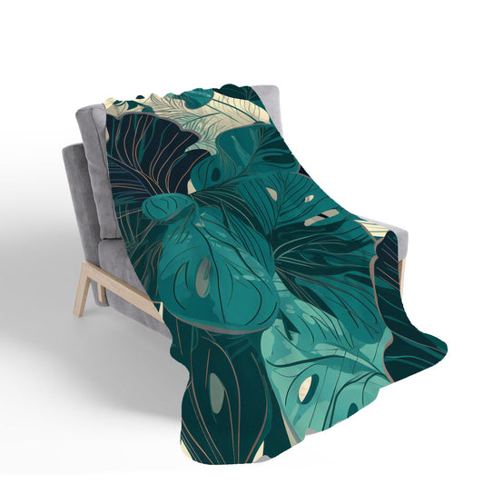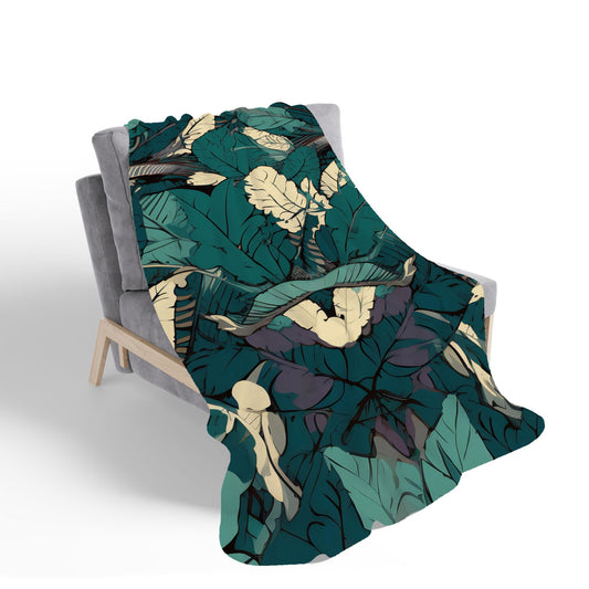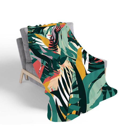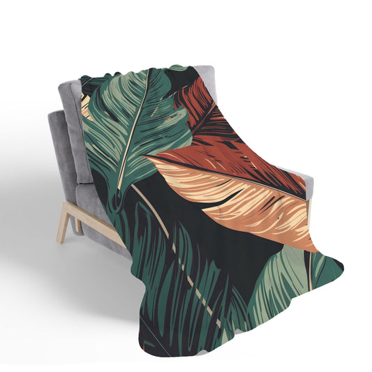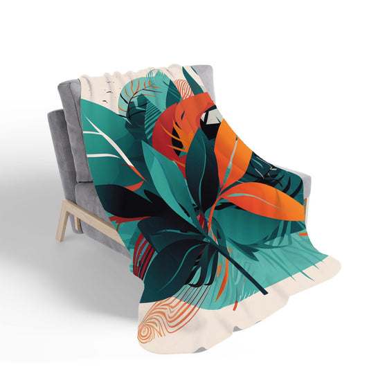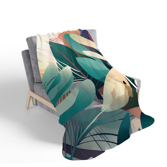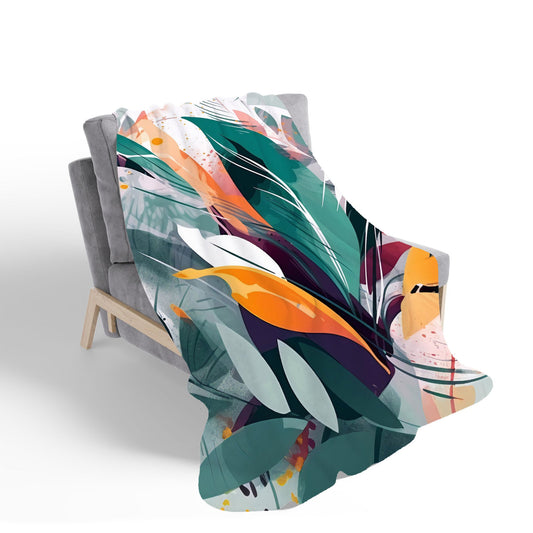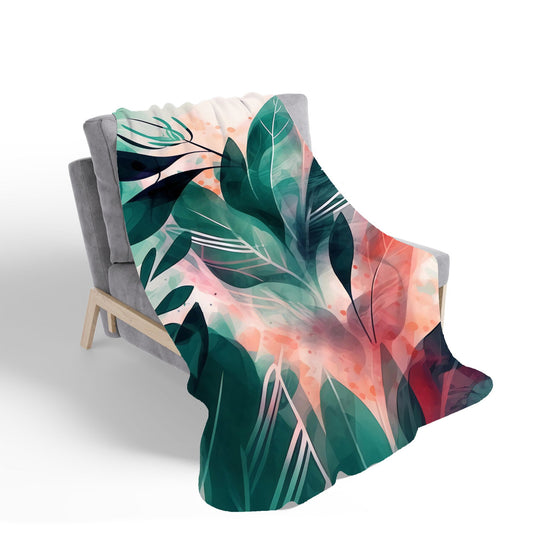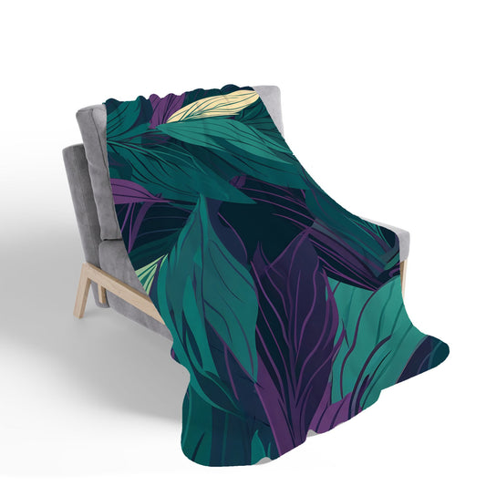 Coloured Abstrace Feather Leaves Sherpa Blanket
