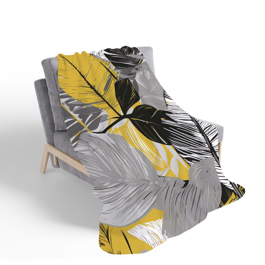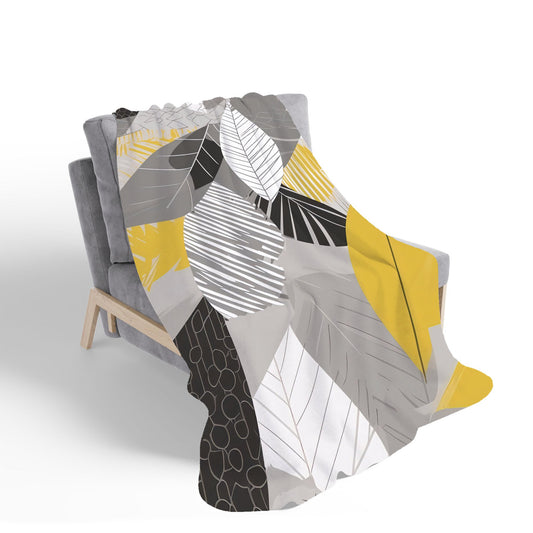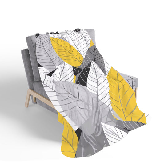Grey Yellow Autumn Leaves Sherpa Blanket