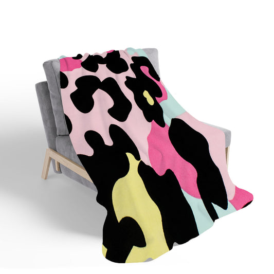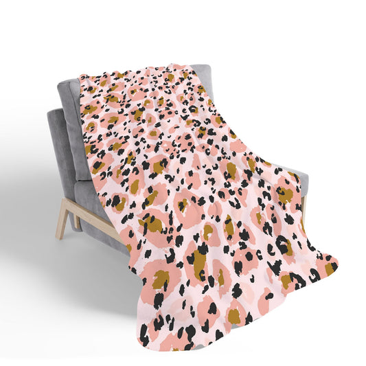 Hand Drawn Pink Leopard Print Sherpa Blanket