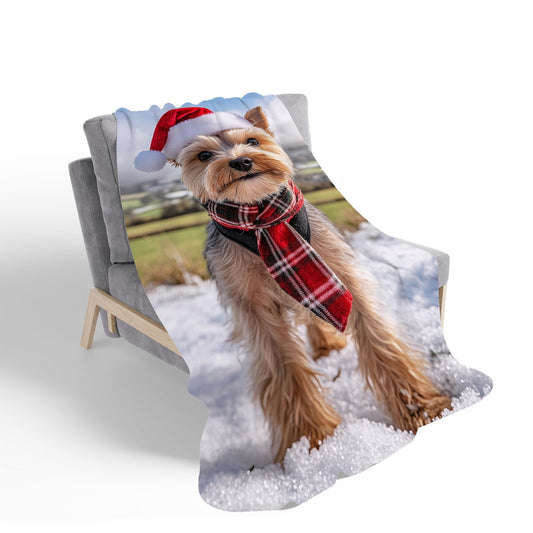 Snowy Christmas Yorkshire Terrier Sherpa Blanket
