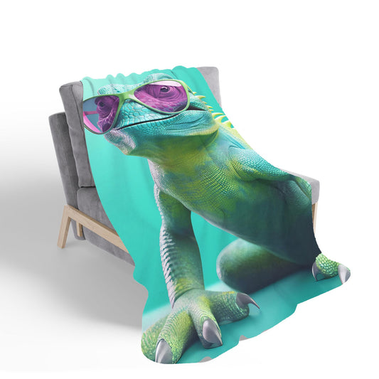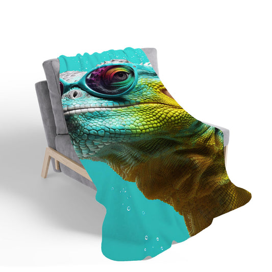 Splashart Iguana Wearing Glasses Sherpa Blanket