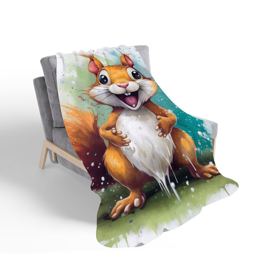 Happy Splashart Squirrel Sherpa Blanket