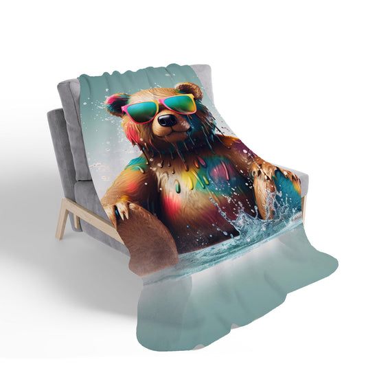 Splashart Colourful Bear In Glasses Sherpa Blanket