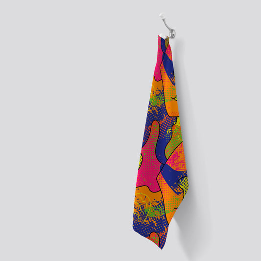 Abstract Bright Colorful Tropical Leaves Tea Towel