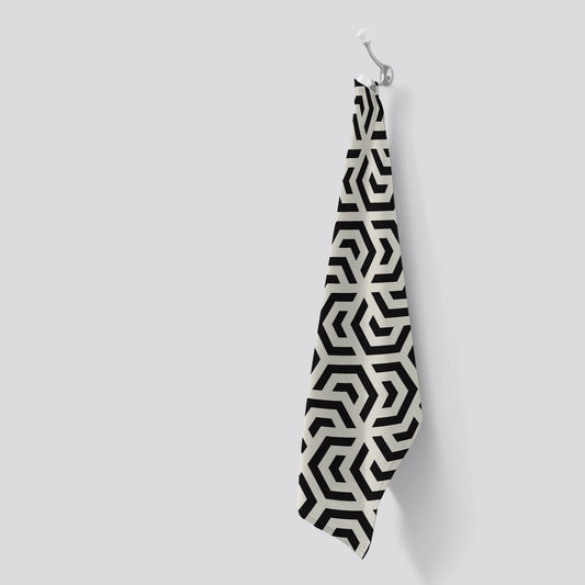 Geometric Monochrome Hexagonal Pattern Tea Towel