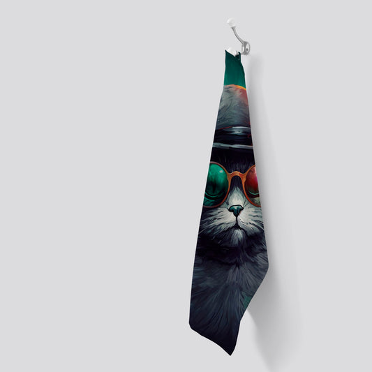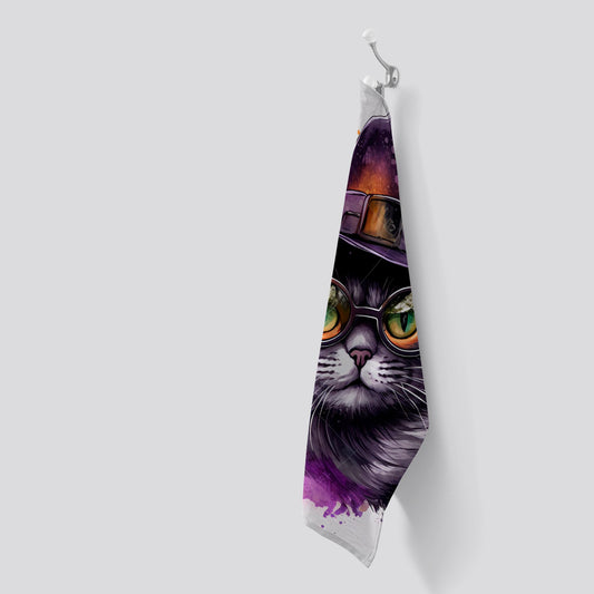 Splashart Longhaired Witches Cat Tea Towel
