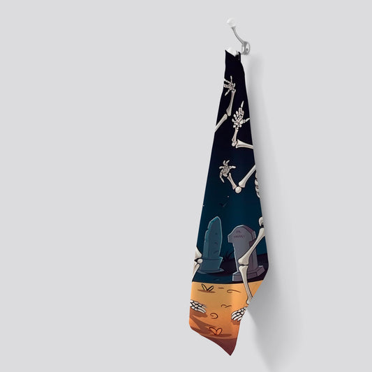 Dancing Skeletons In A Graveyard Tea Towel