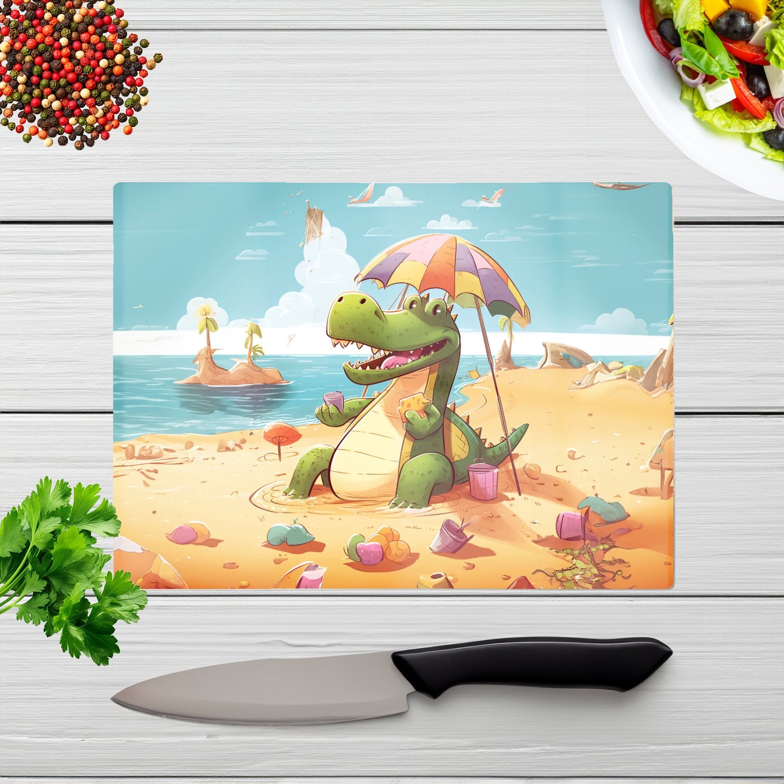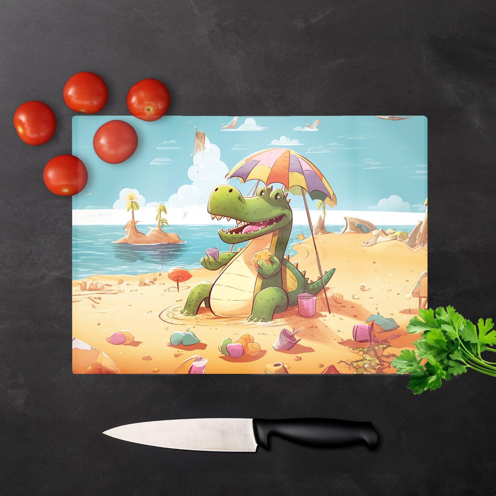 A Crocodile On A Beach Holiday Glass Chopping Board