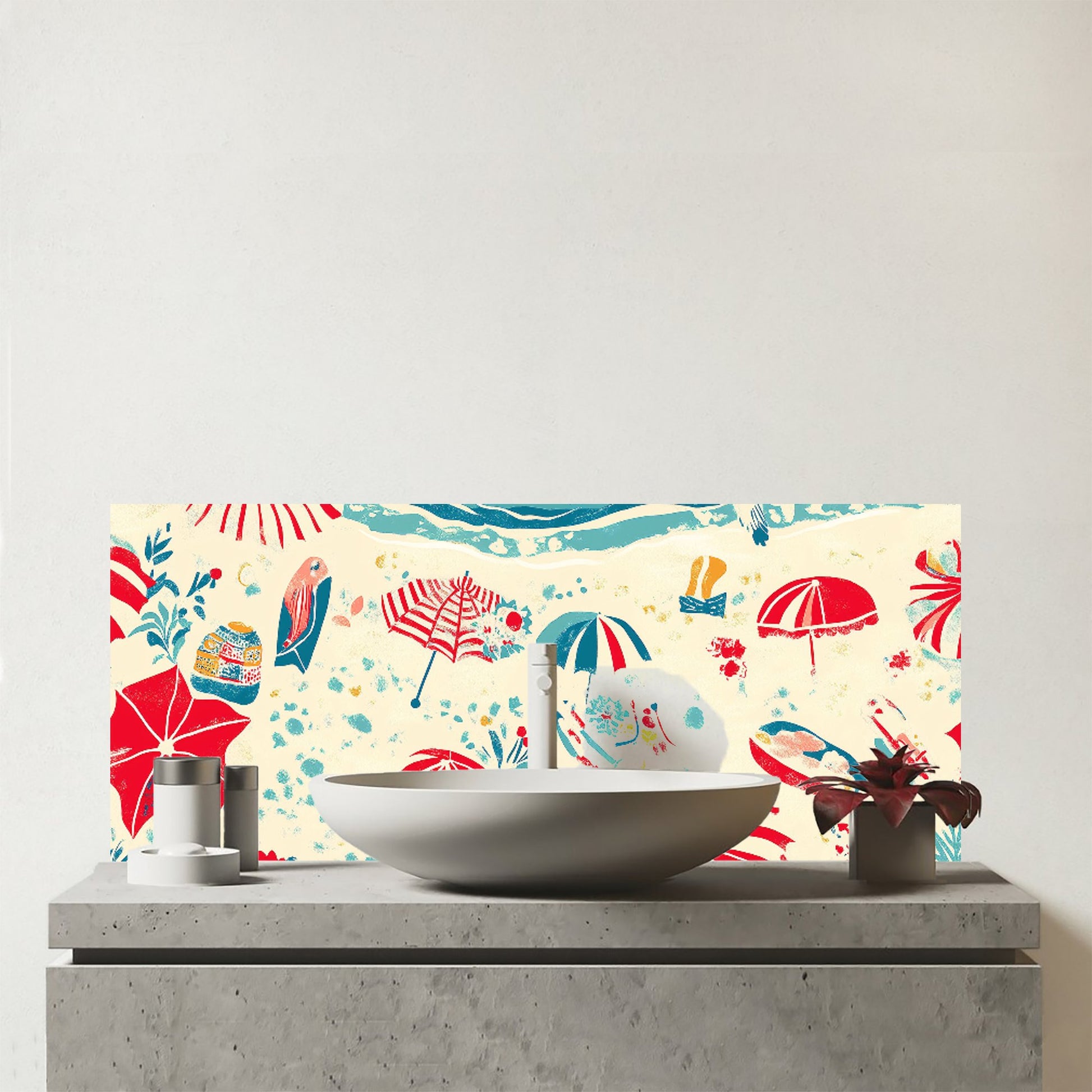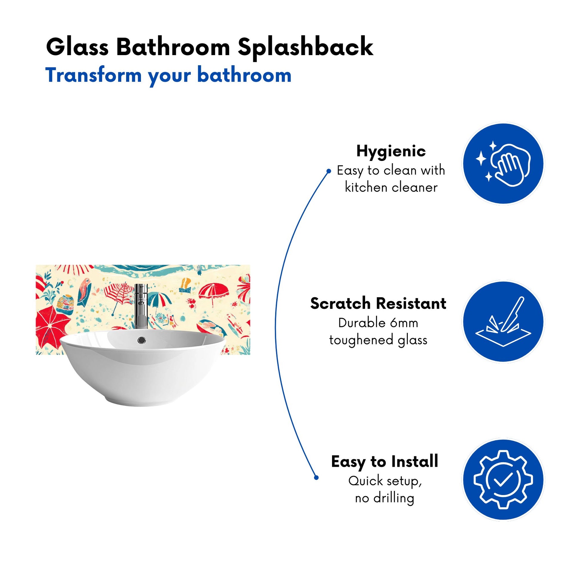A Day At The Beach Glass Bathroom Splashback