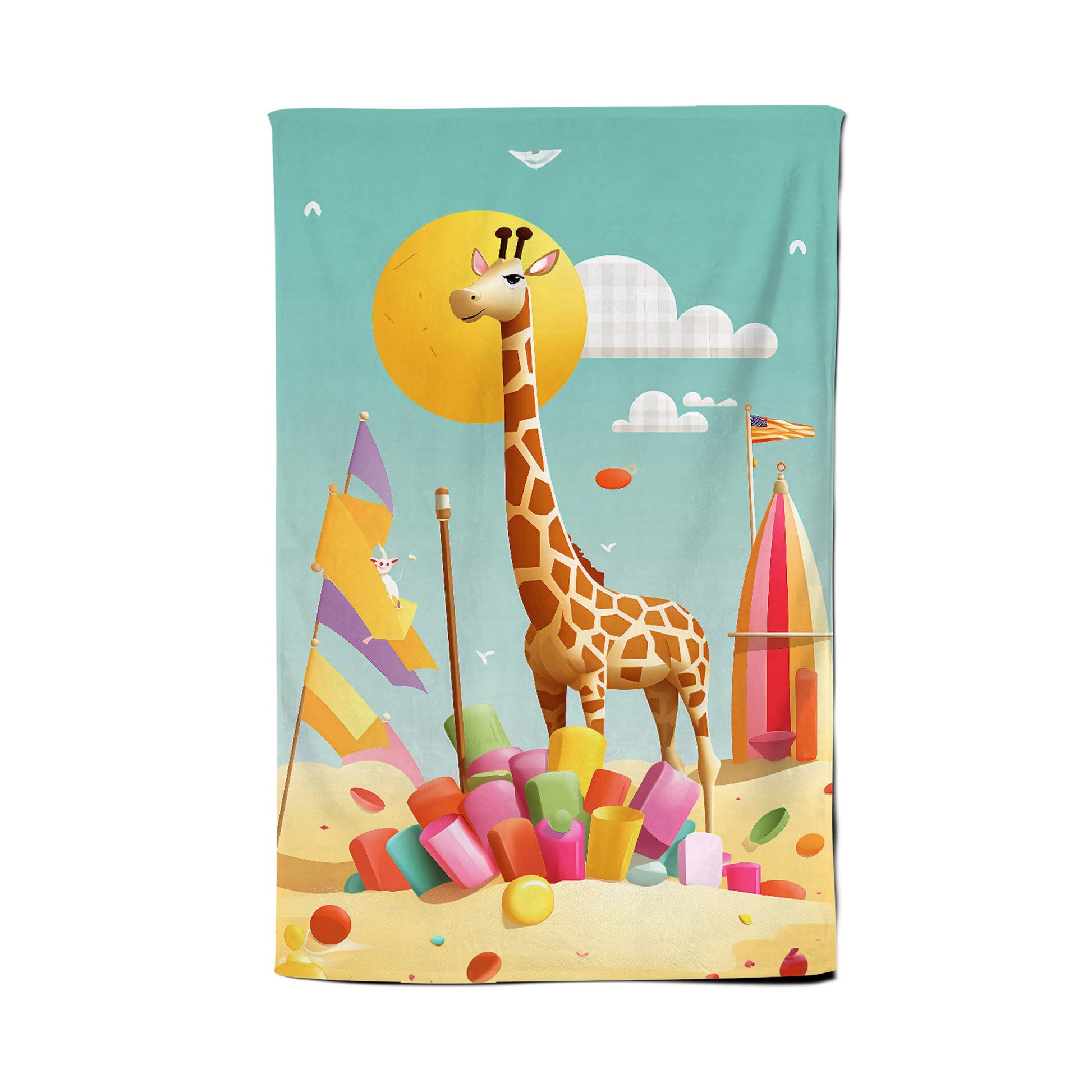 A Giraffe On A Beach Holiday Tea Towel