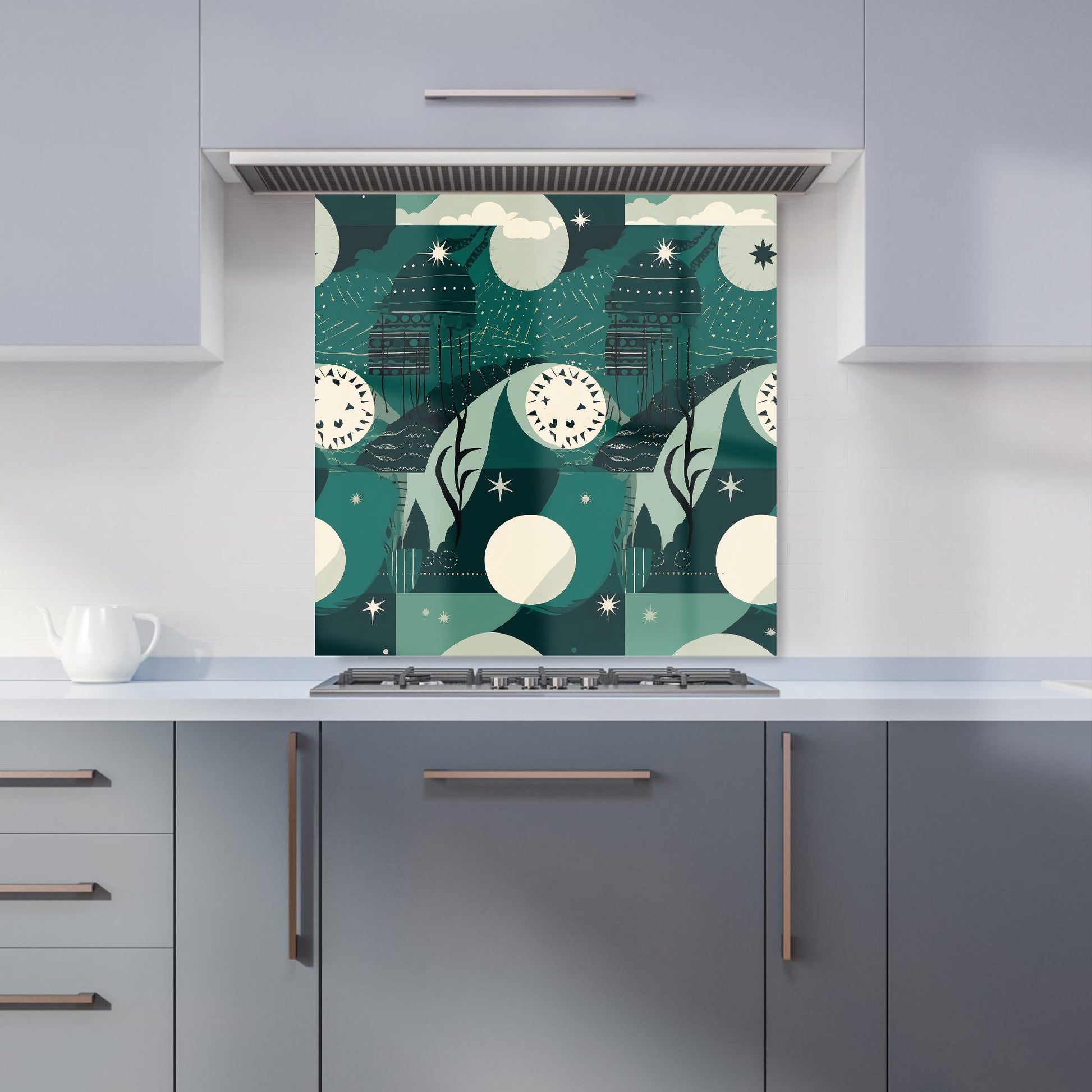 Abstact Green Cream Moon and Stars Kitchen Splashback