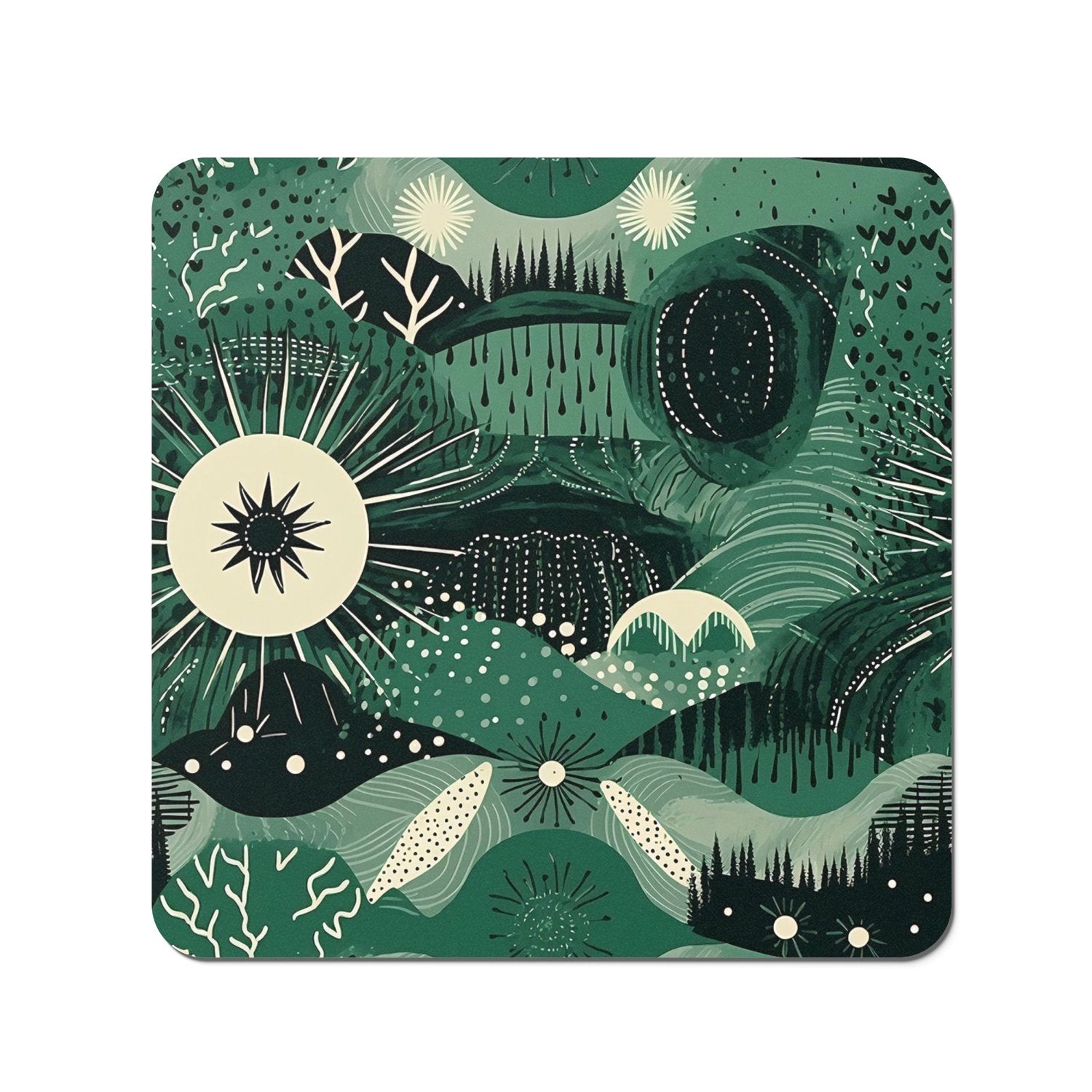 Abstract Green Moon Coasters