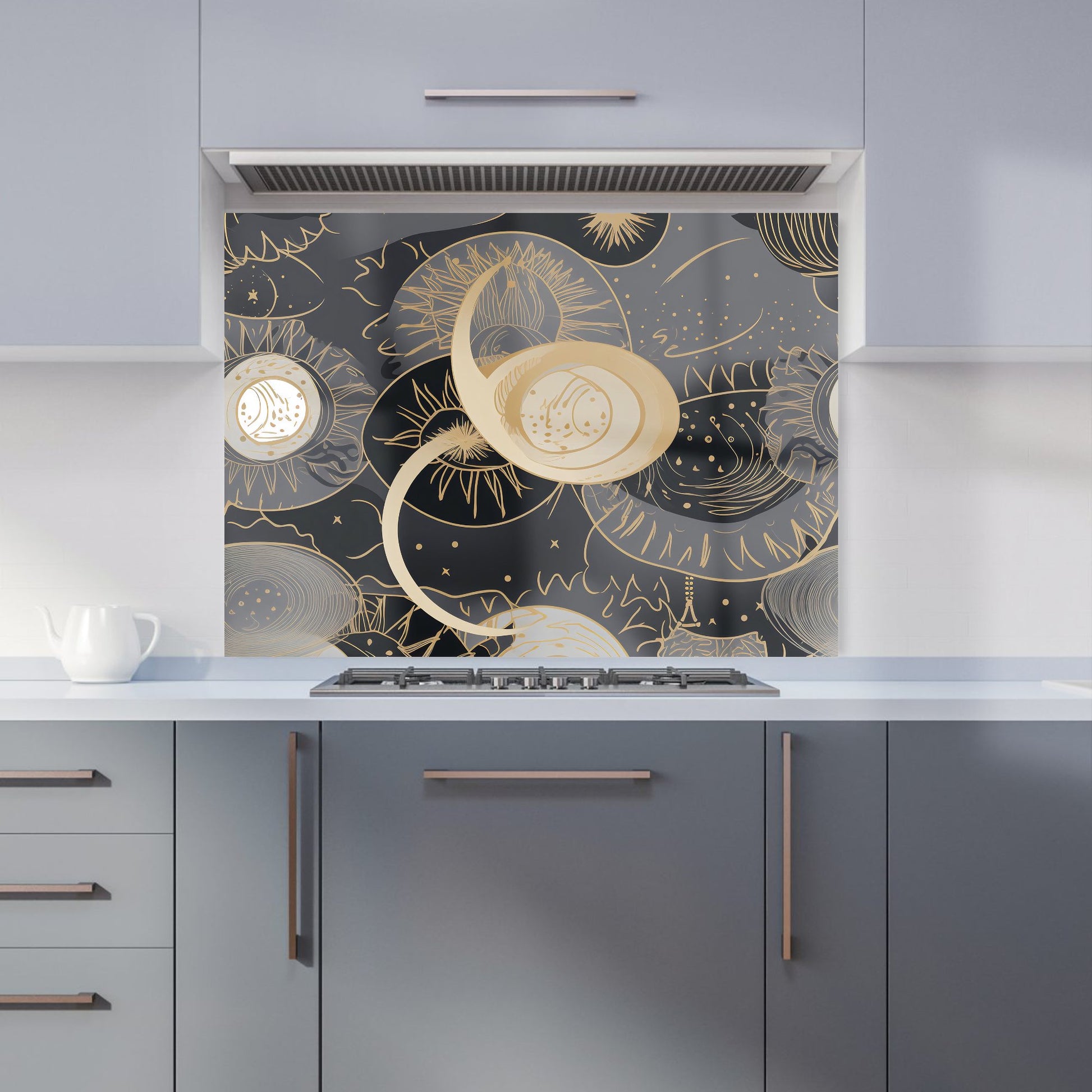 Abstract Silver Gold Sun and Moon Kitchen Splashback